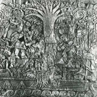 "La iconografía hace referencia a diversos mitos, algunos de los cuales pueden mostrar símiles con pasajes del Popol Vuh, como se advierte en la Estela 25".