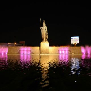 Esta escultura reposa sobre la fuente más grande de la ciudad, una fiel protectora de los jaliscienses bajo el lema ''Justicia, Sabiduría y Fortaleza''. La obra escultórica se debe al artista hidrocálido Pedro Medina, esculpida en bronce por Joaquin Arias en Aguascalientes y traída en tres partes, el diseño de la glorieta es del arquitecto Julio de la Peña, según se lee en el portal vive.guadalajara.gob.mx.