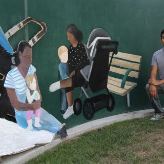 inmigrantes de las mansiones del oeste de Los Ángeles con figuras pintadas en cartón que instala en áreas verdes de la zona con el objetivo de enfatizar su existencia.