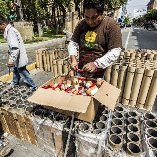 juegos pirotécnicos para este 15 de septiembre en el centro de Guadalajara: su arsenal son casi cien kilos de explosivos.