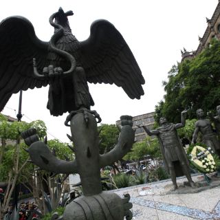 Festejaron a los pies de la escultura realizada por Juan Olaguíbel en memoria de la mexicaneidad, en el Centro Histórico