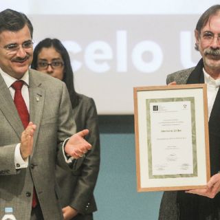 GUADALAJARA, JALISCO (03/DIC/2013).- El editor no solamente debe ser un lector voraz. También debe tener una sensibilidad especial y una paciencia infinita. Todas estas cualidades se encuentran en Marcelo Uribe, hombre entregado a la cultura, gran curioso de la palabra y explorador en el eterno laberinto que forman las palabras, y que la noche del lunes recibió por parte de la