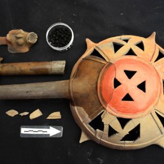 Los investigadores descubrieron dos ofrendas de sahumadores, que en conjunto suman 52 de estos recipientes, la mayoría de ellos (80 %) están semicompletos y tienen remates en forma de cabeza de serpiente con lengua bífida.