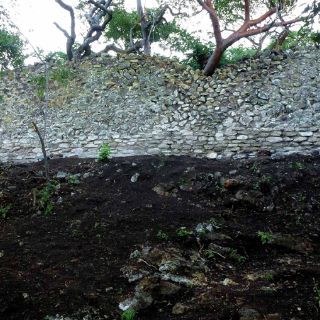 La muralla, con más de mil años de antigüedad, mide alrededor de 500 metros de largo y entre cinco y 15 de altura; en su interior se pueden encontrar un basamento piramidal principal, 50 plataformas y una cancha de juego de pelota, informó el INAH en un comunicado.