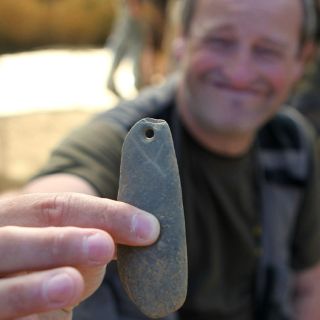 La pieza, un canto de río de lucita de unos 10 centímetros, está perforada en uno de sus extremos y por su disposición se ha observado que estuvo colgada, ha informado Álvaro Arrizabalaga, director de la excavación, quien además ha señalado que el otro extremo de la piedra fue utilizado como útil para retocar los filos de herramientas hechas de sílex, como flechas o rascadores.