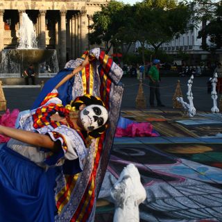 GUADALAJARA, JALISCO (10/ENE/2011).- Cuando se esperaba que la inauguración de La Catrina, el mural pintado en la Plaza de la Liberación se diera sin el acompañamiento de los acordes musicales del mariachi Los Arrieros, éste llegó a la cita pactada.