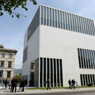Los arquitectos berlineses Bettina Georg, Tobias Scheel y Simon Wetzel diseñaron un cubo de hormigón blanco de 22.5 metros de altura. Sus grandes ventanales ofrecen una vista amplia al entorno histórico que lo rodea, un vecindario "contaminado" por el pasado nazi.