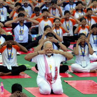 Seguro de que el yoga ayuda a obtener una buena condición física y "es un medio para alcanzar el bienestar" espiritual, el primer ministro, habitual practicante y ferviente difusor de esta disciplina, realizó con la multitud varias posturas o "asanas" tras su discurso, rodeado de un mar de paraguas e impermeables.