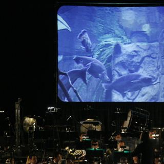 Detrás de los integrantes de la agrupación, una pantalla mostró a los asistentes cómo la vida marina y la música se pueden fundir en uno mismo. Y aunque en momentos parecía una escena cualquiera que se puede ver en el acuario del zoológico, en realidad se trataba de imágenes de la película El mundo del silencio, del director Jacques-Yves Cousteau.