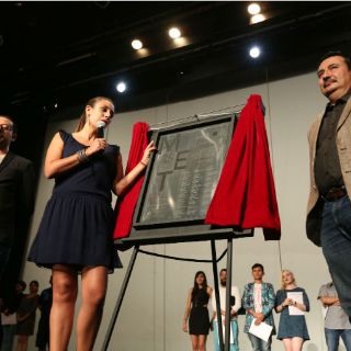 Tras las palabras, se develó la placa conmemorativa de la vigésima edición de la Muestra Estatal de Teatro.