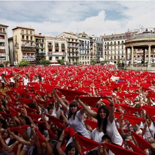 Miles de personas llenaron la plaza del consistorio y alrededores, vestidas de blanco, con sus pañuelos extendidos formando un manto rojo, antes de anudárselos al cuello, símbolo inequívoco de que los sanfermines han comenzado.