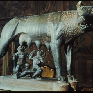 La escultura, que se encuentra custodiada en los Museos Capitolinos de Roma, y cuya copia situada en el exterior -junto al Ayuntamiento de la ciudad- es una de las más fotografiadas por los turistas, se pensaba que era de época etrusca, pero en 1996 cuando fue restaurada comenzaron las dudas sobre su procedencia.