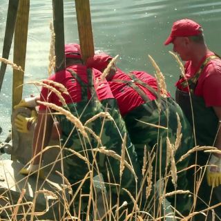 Con la ayuda de bombas de agua prestadas por los bomberos, quitan capas de arena y piedras para sacar sus hallazgos del agua. Utilizan incluso grúas si los objetos pesan demasiado.