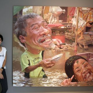 En la galería Ardel de Bangkok, la pintora Lampu Kansanoh exhibe en su colección "Agridulce" una docena de pinturas de gran tamaño que, en forma de caricaturas de colores cálidos, describe las sonrisas inquebrantables de los tailandeses en la fiesta, pero también en la adversidad de las inundaciones.