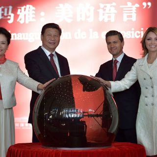 Peng y Rivera también acompañaron este jueves a sus maridos en la inauguración de una muestra de arte de la civilización maya, en el Museo Nacional de China.