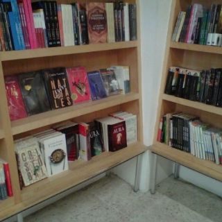 En un mostrador justo a la entrada de la sucursal, pero en la parte baja, se exhiben los libros: Una familia lejana, La gran novela latinoamericana, Aura, Instrumentos de Inéz, Los días enmascarados, El naranjo, Todas las familias felices y Cantar de ciegos.