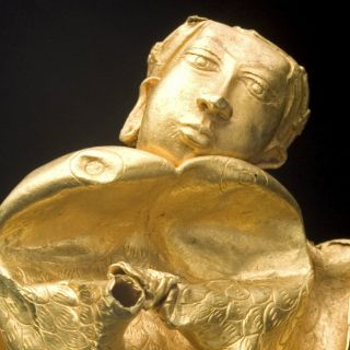 Este metal precioso, marca de poder y prestigio, decoró el cuerpo de los vivos -pequeñas piezas de oro adornaban un saco que simboliza el cordón umbilical de un recién nacido-, pero también el de los muertos, a los que se les cubría el rostro con una máscara dorada.