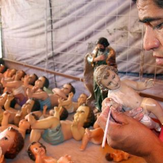 "Ya esto se está perdiendo; y por eso el trabajo ya no es como más antes. Porque yo me acuerdo, cuando yo estaba chamaca, que mi padre hacía por cajas", recuerda mientras trabaja en una de las pocas figuras que aún tiene para reparar.