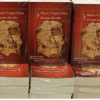 Entre los libros repartidos por fuentes, bancos y otros lugares estratégicos de la capital madrileña figuraron dos ejemplares de la última novela de Vargas Llosa, "El sueño del celta", dedicados por el Premio Nobel.