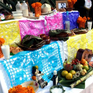 "El altar está dedicado a todos nuestros muertos, en esta ocasión quisimos dedicarlo a nuestros difuntos de México y los que hemos perdido aquí, pero también en memoria de los 43 estudiantes desaparecidos de Ayotzinapa", explicó Myriam Garza.