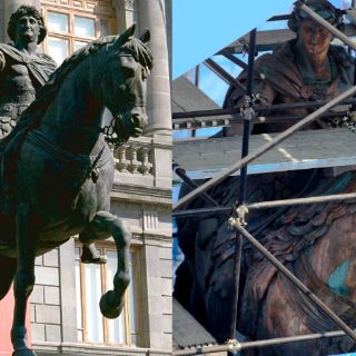 La escultura de 26 toneladas muestra al monarca vestido de emperador romano, montado en un caballo fuerte y en movimiento, como marcaba la tradición romana.