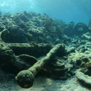 Yacen restos de buques mercantes, calderas de barcos de vapor, timones, anclas y cañones