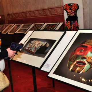 Mencionó que entre las piezas que se exhiben sobresale un huipil triqui y un traje de tehuana con motivos florales, los cuales comparten espacio con imágenes de un abrigo inuit del ártico central, elaborado con cuero de caribú, y un vestido de cuero bordado con púas de puerco espín pintadas de diversos colores.