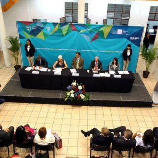 GUADALAJARA, JALISCO (27/OCT/2013).- La organización Palestina y México solicitó al gobierno mexicano reconocer explícitamente la existencia de los estados Palestino e Irsaelí, y a los organizadores de la Feria Internacional del Libro de Guadalajara 2013 establecer una agenda incluyente.