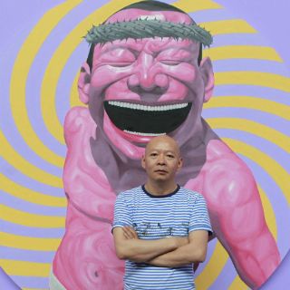 La muestra es un repaso por la colorida iconografía surrealista de Minjun