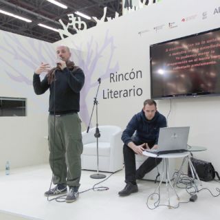 Cualquier visitante de la FIL puede detenerse a escuchar la propuesta de Böttcher y su colega Dalibor Markovich, quienes a lo largo del día hacen varias presentaciones desde la Text Box. Hoy miércoles, sin embargo, tuvieron la oportunidad de salir y hacer su performance poético o Slam Poetry de manera más tradicional: en el pequeño escenario del Rincón Literario del stand.