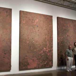 La exhibición, que se presenta en la galería Peveto de Houston, está compuesta por una decena de otras de gran formato, en su mayoría lienzos impregnados de la tierra del centenario Rancho Yturria, ubicado en Brownsville, Texas, en la zona fronteriza con México.