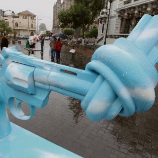 En México, un país envuelto en conflictos violentos, el logo resulta atractivo. Karla, una joven de 27 años que caminaba por el andador durante la mañana gris y húmeda de este jueves, se encontró de frente con las armas de fuego inofensivas. “Ver una pistola con un nudo en la punta… a todos nos suena a luz”. Se tomó unos minutos para apreciar cada figura y así descubrió que personalidades reconocidas por todos los mexicanos contribuyeron en las piezas.