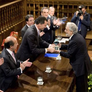 La figura del tenor fue ensalzada por el heredero de la Corona española, las autoridades de la universidad y el comité de selección del galardón, por sus más de tres mil 500 actuaciones, la dirección de 450 óperas, la interpretación de 134 papeles, por la fundación de Operalia en 1993, entre otras acciones.
