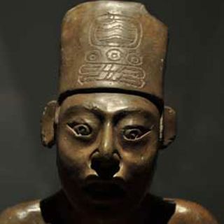 La primera de ellas, que data de entre 200 y 600 d.C., procede del Edificio J, este bloque de piedra muestra a un gobernante, posiblemente 1 Temblor, portando una máscara del dios de la lluvia y una cabeza de jaguar en la mano, alegoría del sacrificio y la decapitación de un gobernante enemigo.
