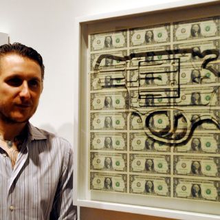 Scott Campbell presentó, por primera vez en México, una muestra de imágenes tridimensionales emblemáticas de este país, elaboradas con miles de billetes perforados de un dólar.