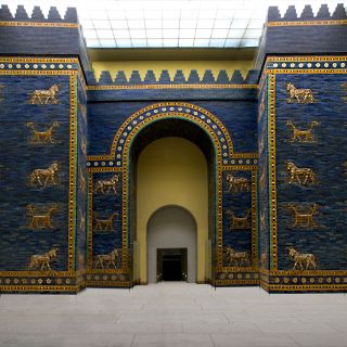 La otra puerta de Ishtar, que es el nombre de la diosa del amor, la guerra, la vida y la fertilidad, fue reconstruida en 1930 en el Museo Pérgamo de Berlín a partir de los restos descubiertos en Babilonia durante las campañas arqueológicas alemanas entre 1902 y 1914.
