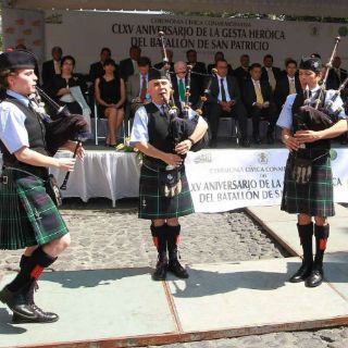 Previo a la ceremonia, la agrupación fundada en 1997, en conmemoración del 150 aniversario de la gesta heroica de aquel grupo de soldados irlandeses y escoceses que luchó al lado de México durante la guerra de intervención estadounidense en 1847, ofreció una probadita lo que llevarán a Escocia.