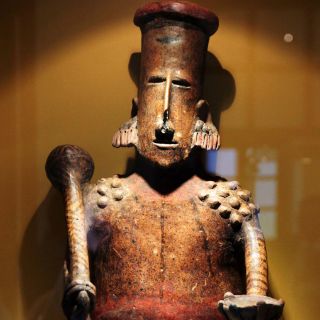 Dentro de las columnas protegidas pueden verse figuras ataviadas que son expresiones de la existencia de una sociedad jerarquizada; representaciones pequeñas de seres humanos para explicar un proceso de identidad de la comunidad; figuras que resaltan la maternidad, líderes de inmensos rostros, formas antropomorfas que plasmaban información de estados físicos y sociales de esos periodos. Alicia Rodríguez, una de las "colaboradoras" de la muestra, explica a dos jóvenes que algunas piezas tienen técnicas precisas de desarrollo evolutivo por la relación con otras culturas, pues están más elaboradas y ornamentadas.