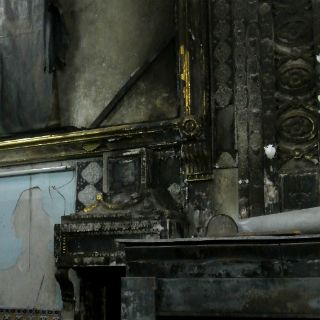 El incendio del pasado 1 de enero dañó el extremo derecho de la urna que contiene la escultura del ''Señor de las Maravillas''