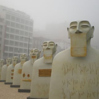 En el centro de su santuario, anclado en el corazón de la capital del país, un guardián (el onceavo busto de bronce de la exposición Nuestros silencios que ha recorrido Portugal, España y Bélgica) observa el trabajo de todo su equipo, custodia el recinto y comunica, aún con la boca cerrada por una placa. Es en este escenario donde todo sucede.