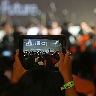 Con la puntualidad que la caractiza, la orquesta dio inicio a su función a las 22:00 horas sobre el escenario Tierra, foro principal del encuentro tecnológico que reúne a más de 15 mil estudiante y profesionales en las instalaciones de Expo Guadalajara.