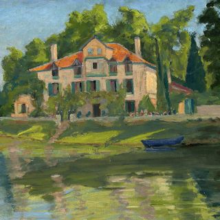Inspirado por la belleza de los alrededores del Château de Bordaberry, Churchill cogió sólo por segunda vez los pinceles desde el comienzo de la Segunda Guerra Mundial, hecho que documenta una fotografía de la época.