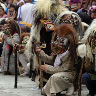 Gestos monstruosos. Rostros de animales. Colores chillantes. Cabellera desordenada. Las máscaras de tastoán reúnen estas características para mostrar episodios de historia.