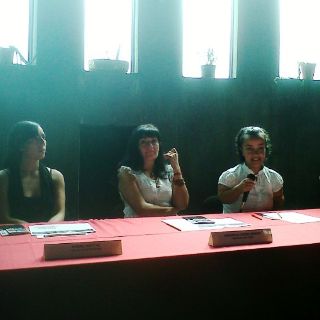 En la conferencia estuvieron presentes la directora del LARVA, Verónica López y la integrante de Estudio Tres23, Debra Heftye, quien dijo que en las producciones de teatro no se cuenta con el gran equipo, sino con lo indispensable.