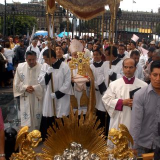 CIUDAD DE MÉXICO (22/JUN/2011).- A través de una procesión al estilo novohispano, hoy fueron trasladados las reliquias del arzobispo Juan de Palafox y Mendoza (1600-1659) de la Parroquia de Santa Veracruz a la Catedral Metropolitana, donde fueron recibidos por el cardenal Norberto Rivera, y colocados en el Altar Principal.