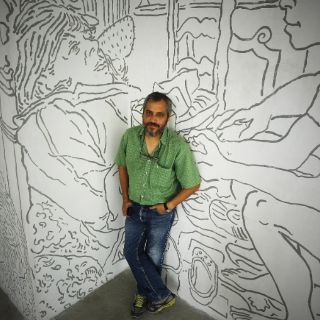 El artista contó que se trata de la primera vez que sus trazos se ven en formato grande, ya que antes sólo formaban parte de sus libretas. Detalló que el proceso se hizo con la ayuda de proyectores: por la noche se ponían las imágenes y un grupo formado por seis personas iba pintando con acrílico los trazos.
