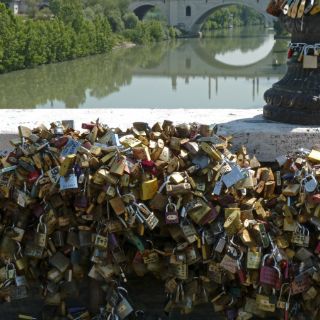 Pero este gesto de amor empezó a ser imitado por los jóvenes romanos y por los turistas y miles de candados fueron enganchados en las farolas del puente romano.