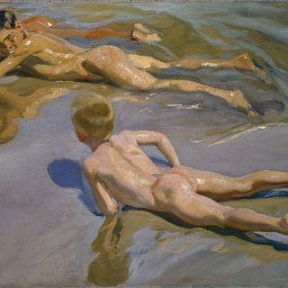 Durante ese verano, Sorolla terminó cuatro obras de una "creatividad sorprendente", relató Bidell, entre ellas "Niños en la playa", que el marchante valenciano Justo Bou vendió a la coleccionista María Bauzá de Rodríguez, quien conservó el cuadro hasta que el nieto del artista, Francisco Pons-Sorolla, lo adquirió a finales de la década de 1950.