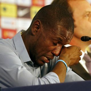 BARCELONA, ESPAÑA (30/MAY/2013).- Tras seis años en el FC Barcelona y una lucha heroica contra el cáncer, el defensa francés Eric Abidal, con lágrimas en los ojos, anunció este jueves que deja el club catalán para continuar su carrera antes de una posible vuelta como miembro de la directiva.