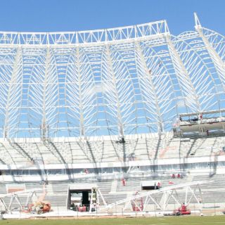 Copa del Mundo, albergará el miércoles su primer partido oficial con apenas la mitad de las sillas instaladas y los trabajos de construcción todavía en marcha.